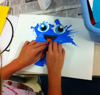 2nd grade began by making an oops with colored ink and using a straw to blow it around into a "splat." We then used our imaginations to turn our splats into little monsters!